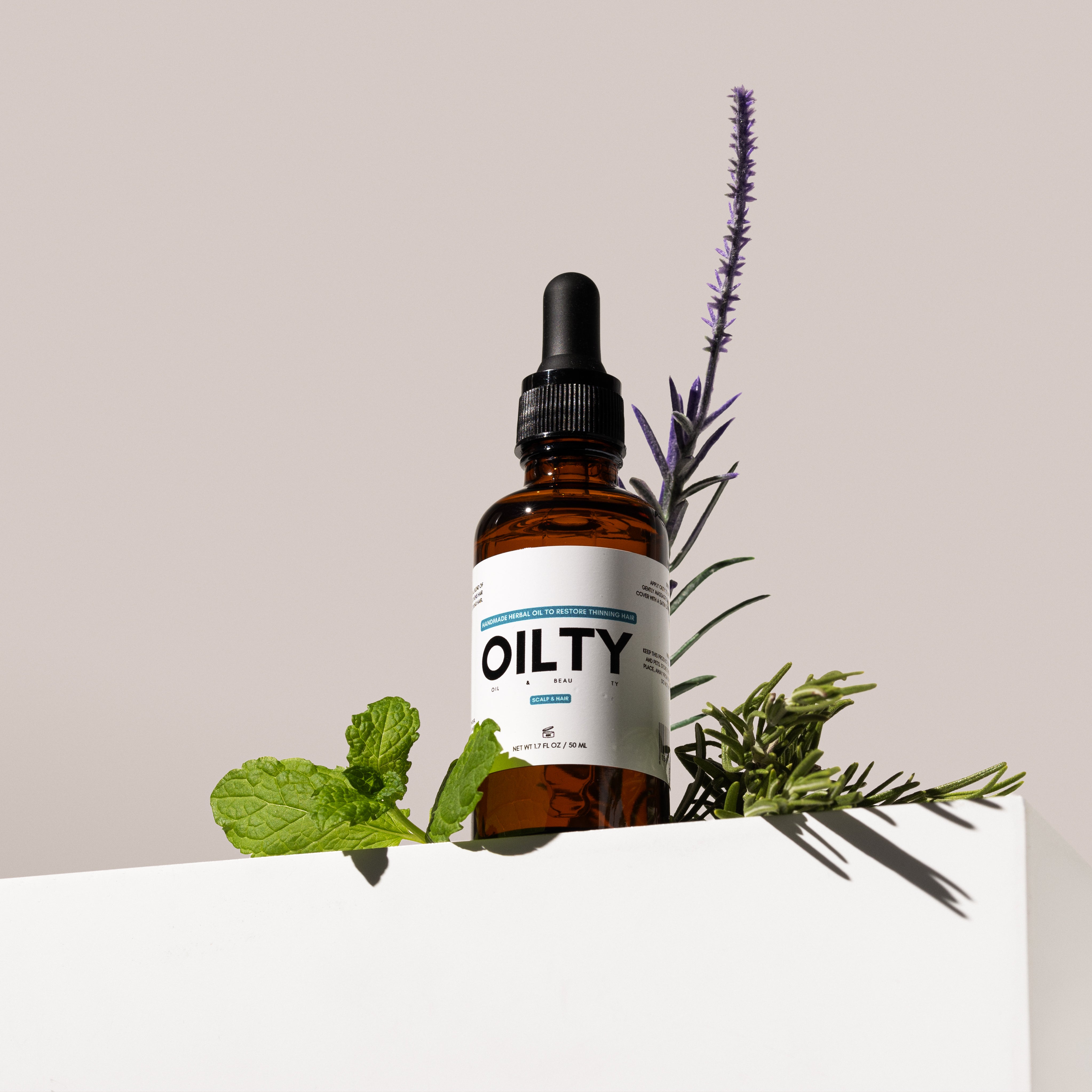 OILTY is made with a powerful mix of herbs like Chebe Powder, Bhringraj, Vetiver Root, and Dried Amla, combined with botanicals like