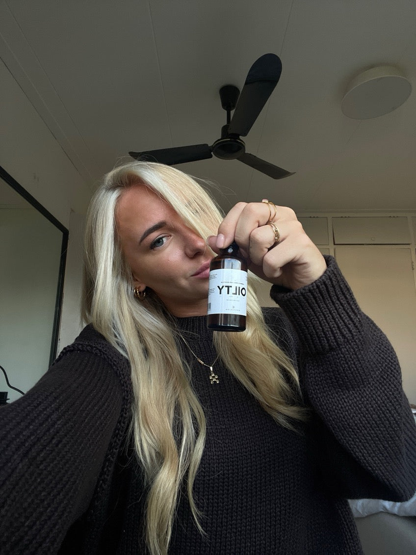 Oilty helps improve the health and growth of hair, brows, lashes, and beard, while also strengthening nails and softening skin. The carefully selected oils and herbs in Oilty work together to nourish, repair, and protect, giving your body the natural care it deserves.